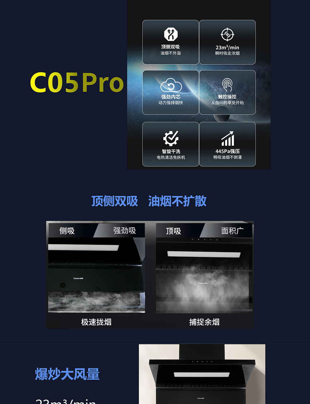 頂側(cè)雙吸,23方大吸力,觸控操控,智旋干洗,445Pa強(qiáng)壓
