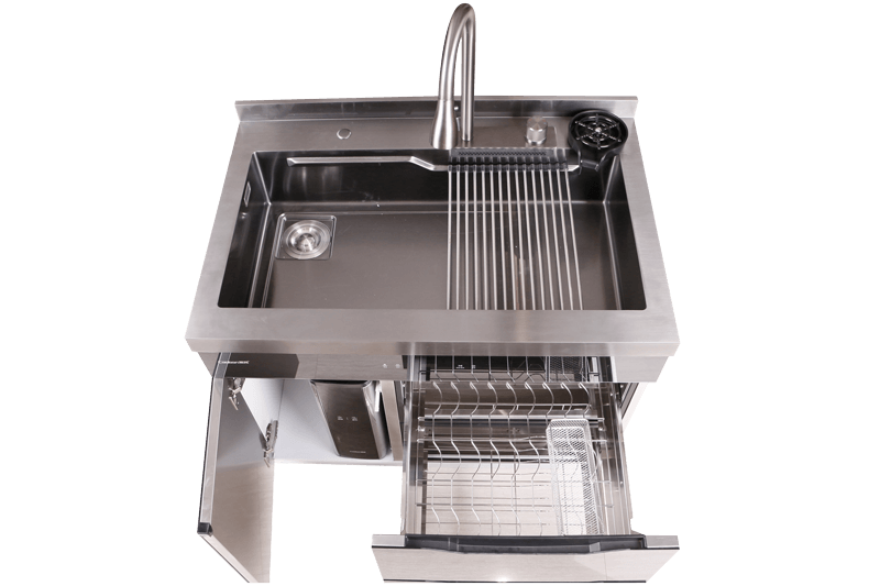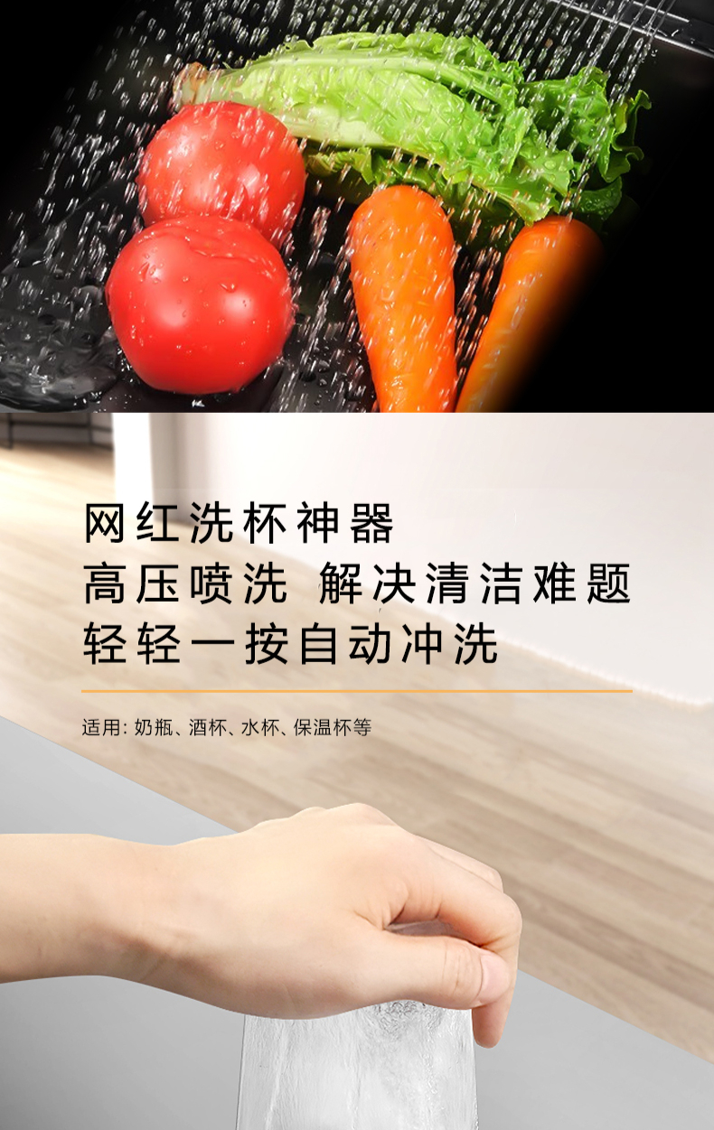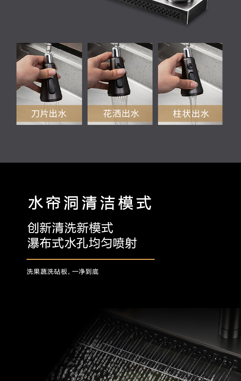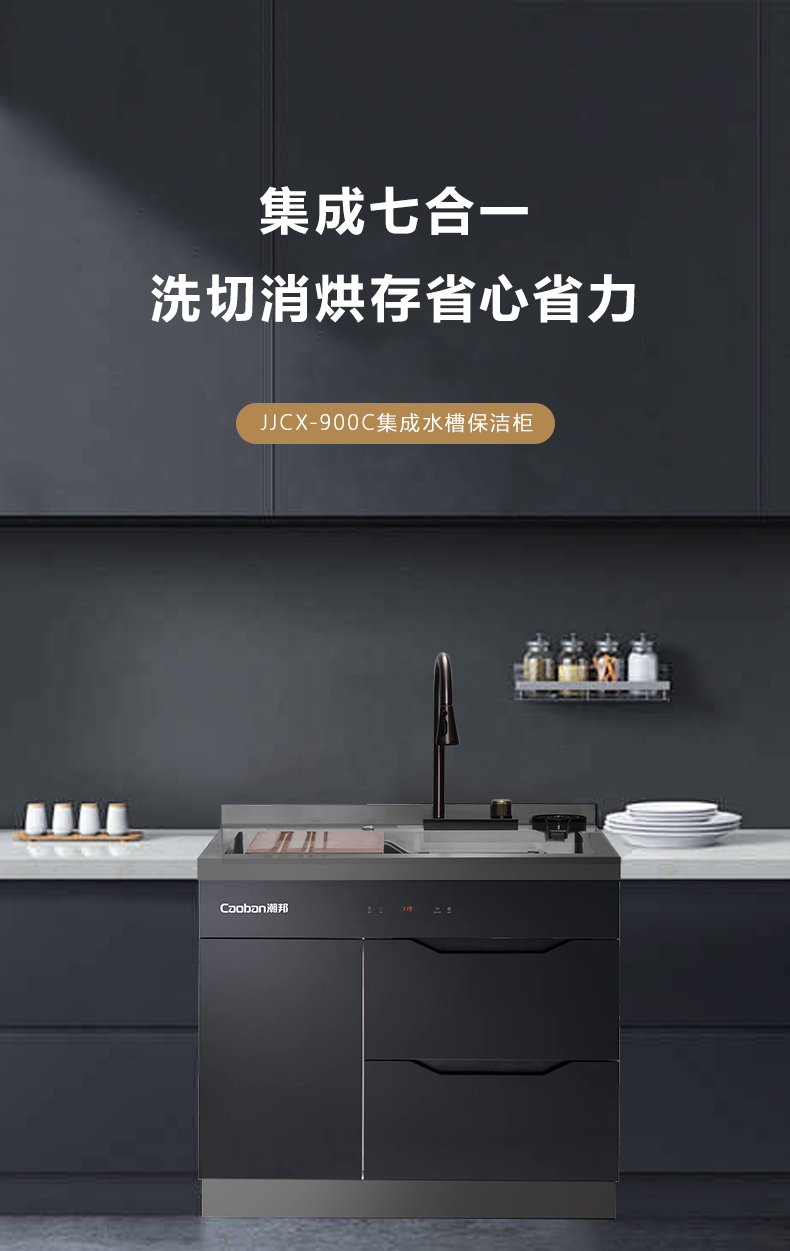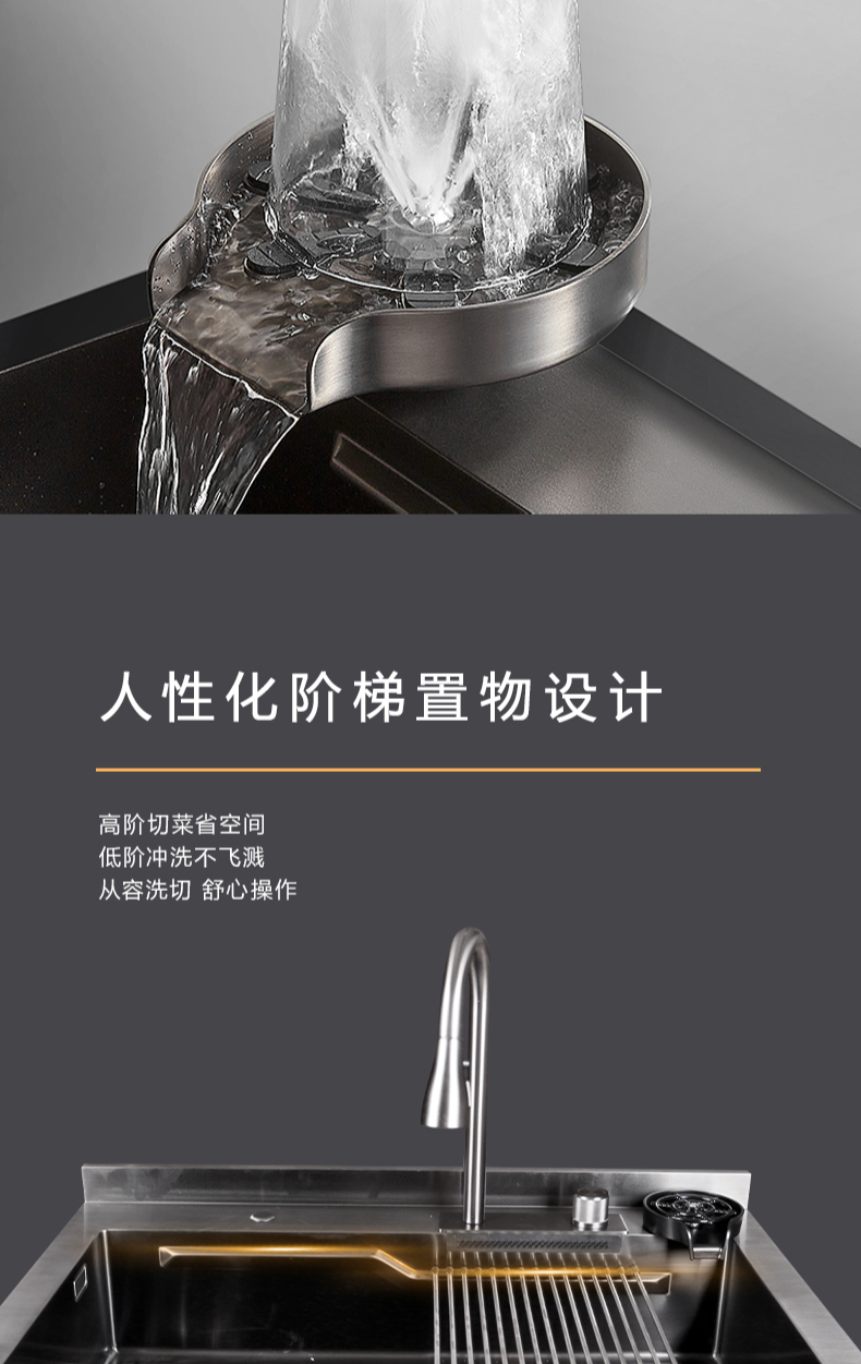 40L大單槽,黑鈦納米涂層,強(qiáng)力清潔洗杯器,雙層保潔柜,階梯置物不飛濺,一體沖壓