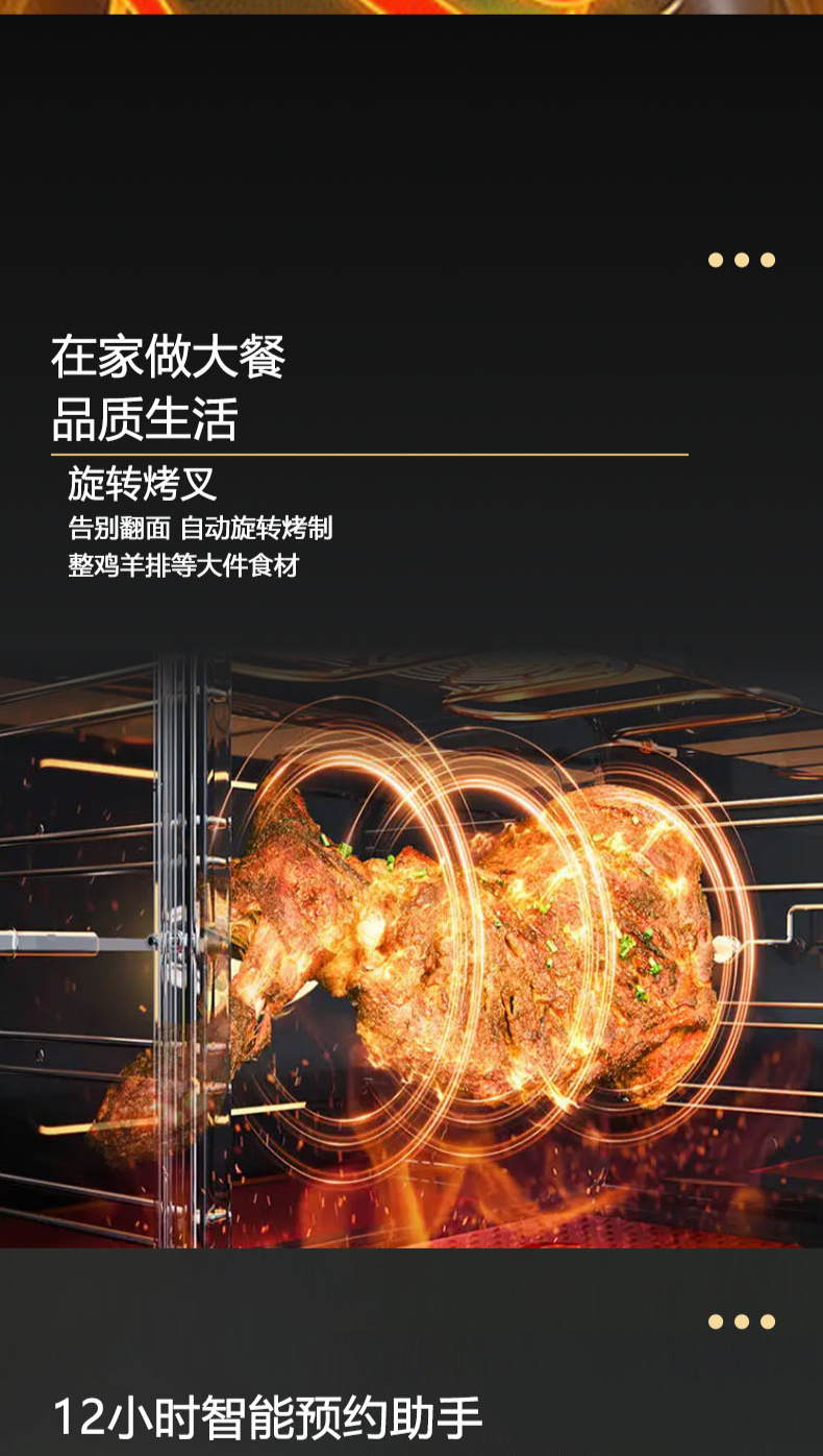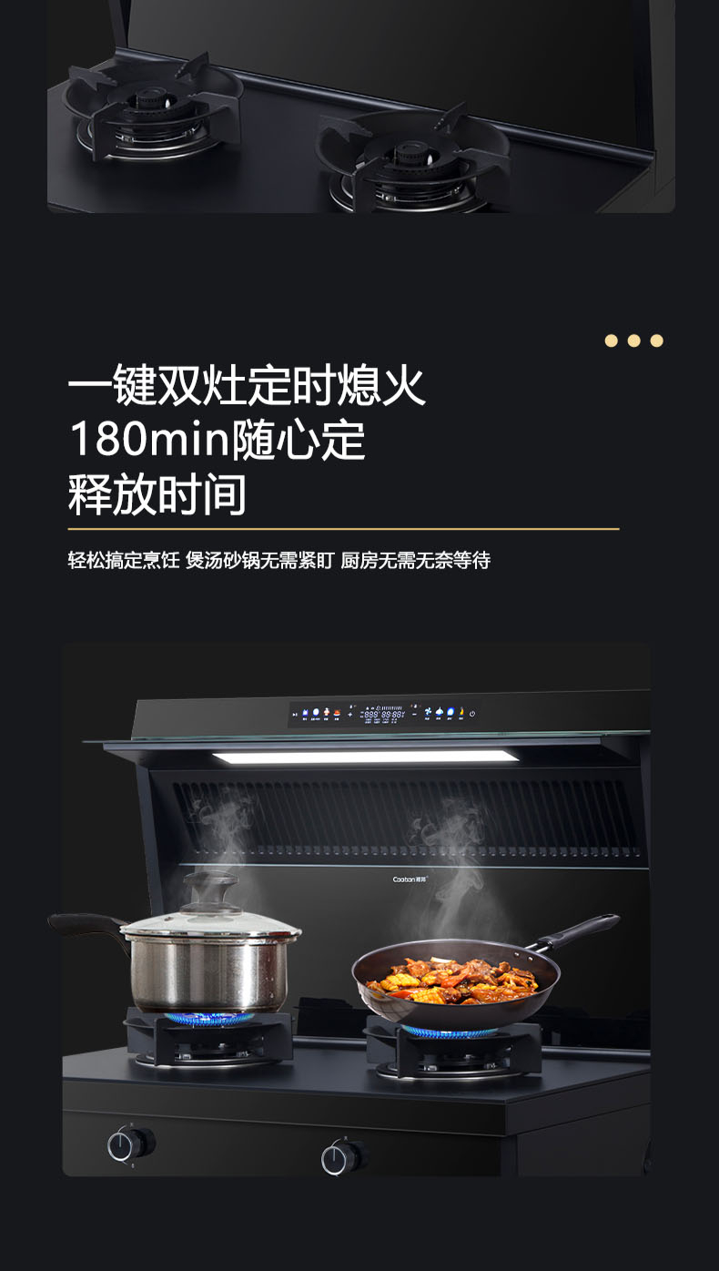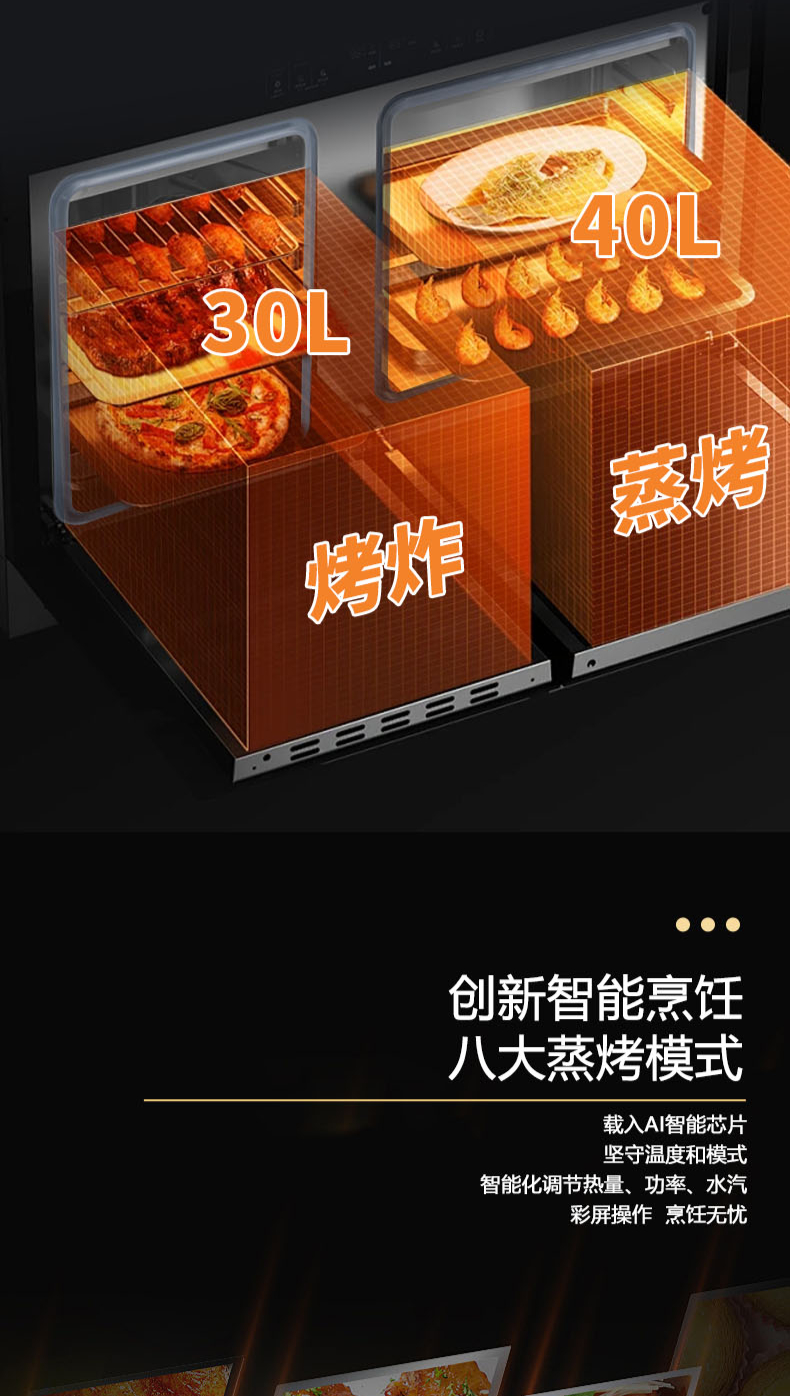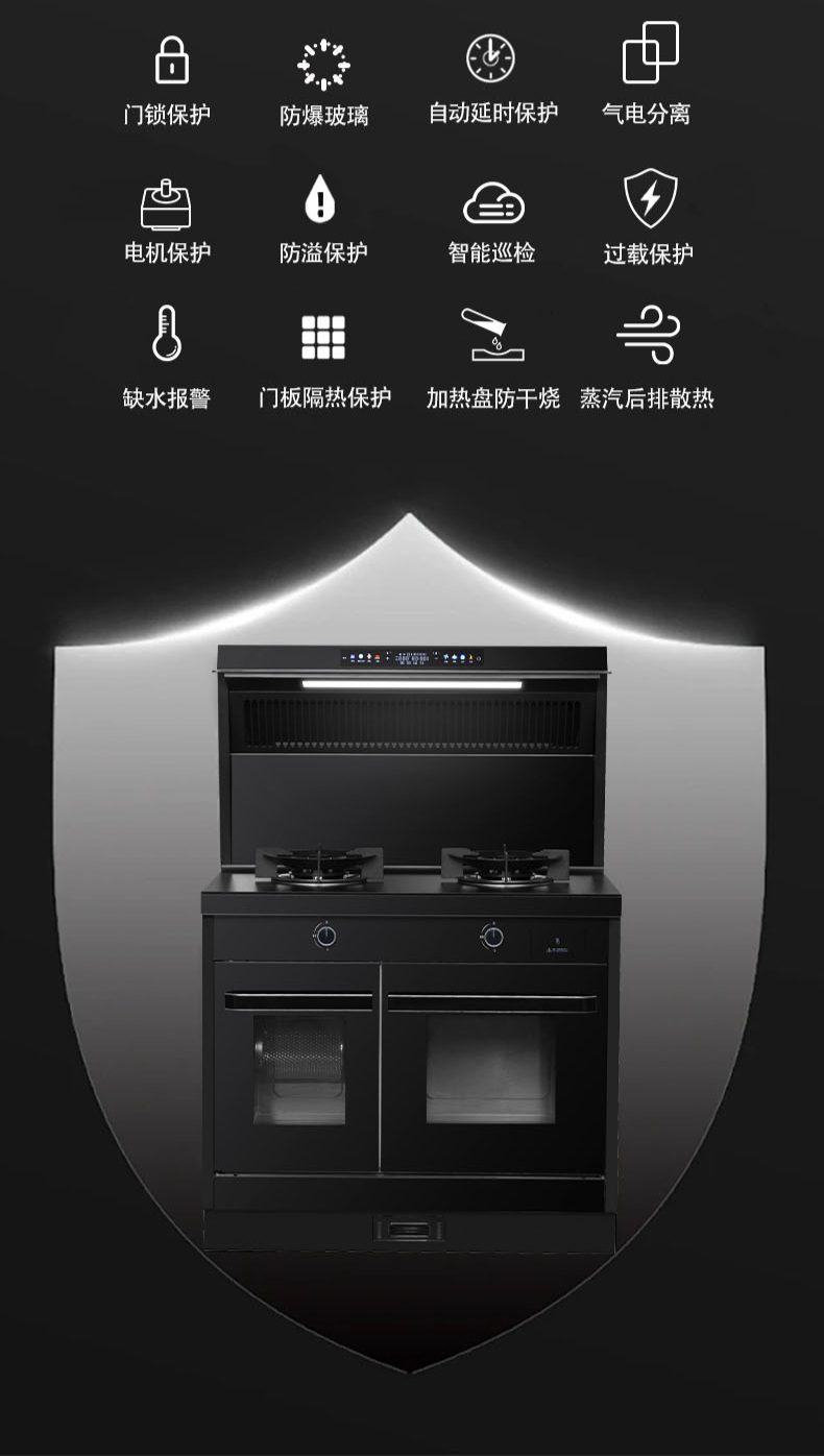 26m3每分巡航風量,左烤右蒸烤,旋風轉烤,智能彩屏,揮手感應,雙灶定時熄火