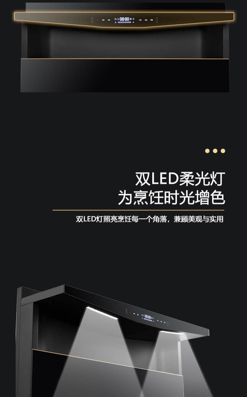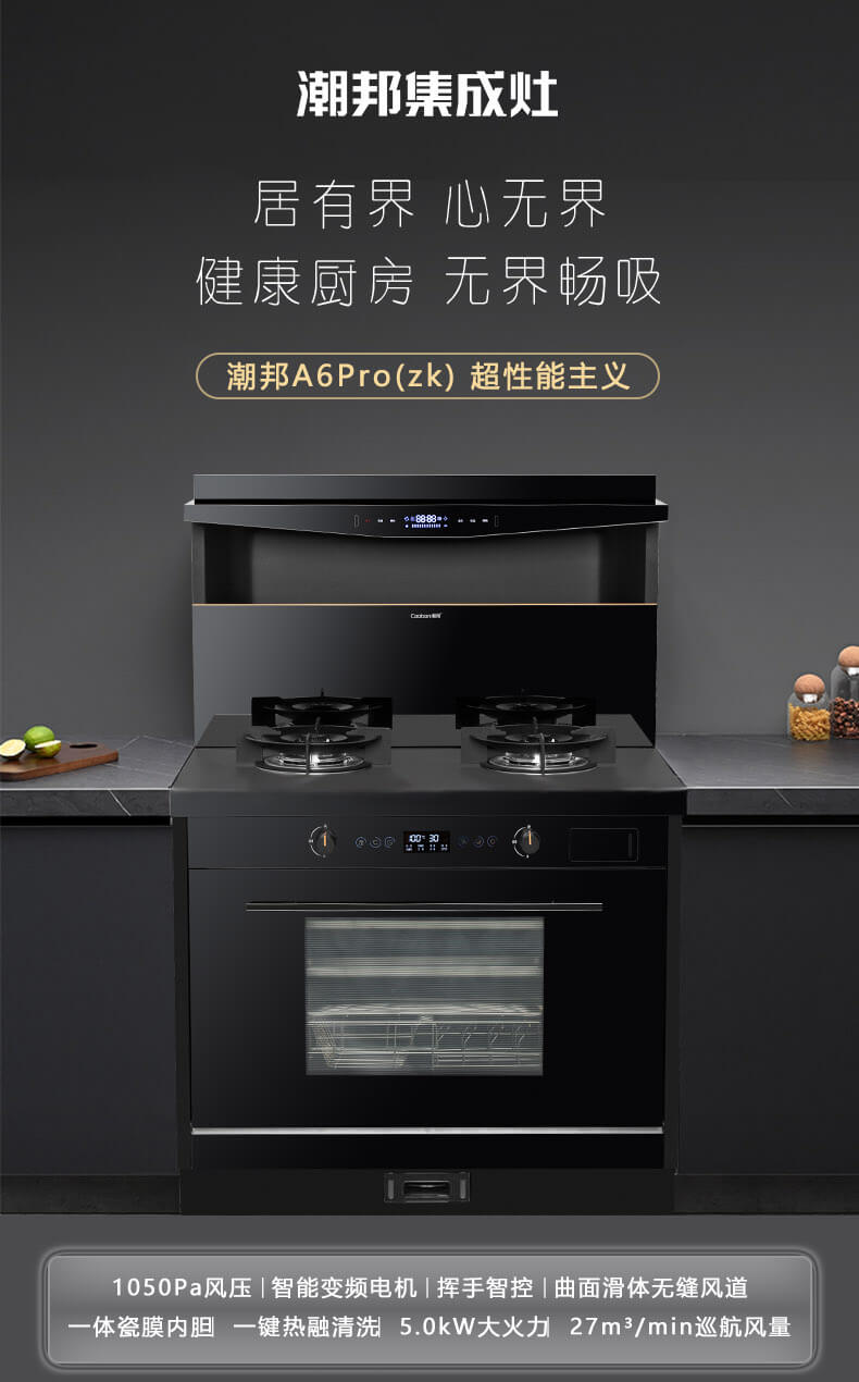 1050Pa風壓,智能變頻電機,揮手智控,曲面滑體無縫風道,一體瓷膜內膽,一鍵熱融清洗,5kW大火力