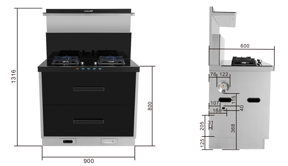 28cm直徑大風輪,油煙分離,采用立體油煙分離技術,分離后的油污通過管道盡收在集油盒底部。