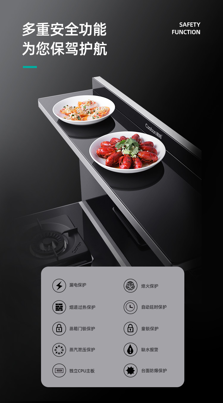蒸烤分層集成灶,邊蒸邊烤,美味加倍,引領蒸烤分層新時代。